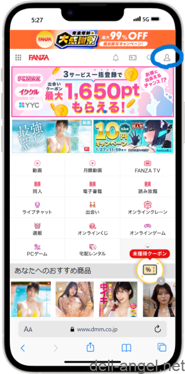 - スマートフォン版:FANZAポイントクラブの右上の