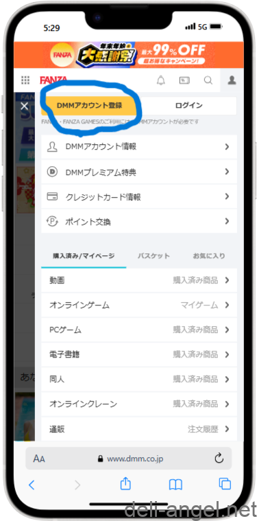 - FANZAへログイン