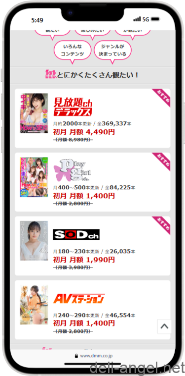 FANZA(ファンザ)TVは、はじめての方用ともいえる月額550円! かなり料金が安くてオススメです。