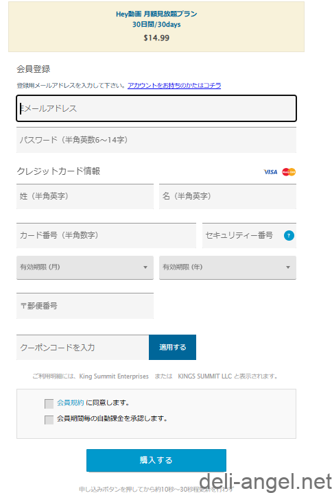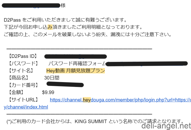 ちなみにクレジットカード明細には決済会社「DTI SERVICES, INC.」または「KINGSUMMIT」が記載されますので、アダルトサイトだと分かりにくいと思います。