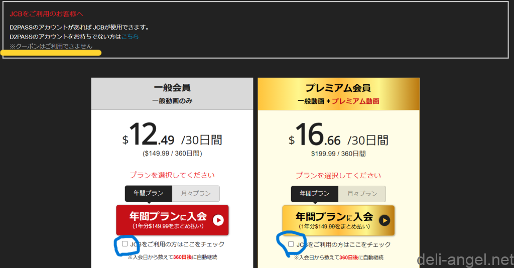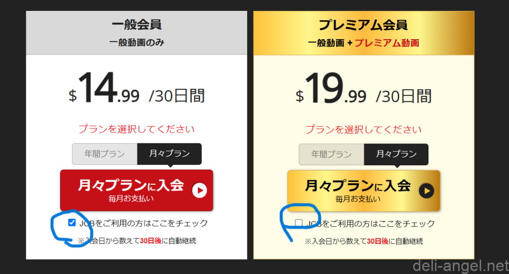 - ステップ2お好みのプランを選びJCBのボタンをチェックしてから入会をクリック