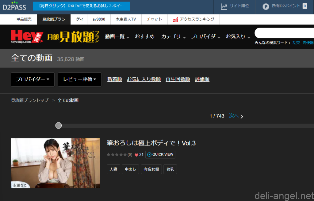 「D2Pass」とは・・・それぞれのカリビアンコムや一本道などの人気アダルトレーベル、単品レーベル、Hey動画(へいどうが)見放題プランなどにログイン出来る共通のIDだと思ってください。